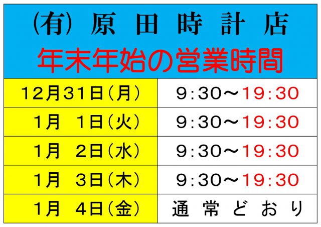 12月31日~1月3日は19:30までの営業とさせていただきます。